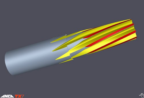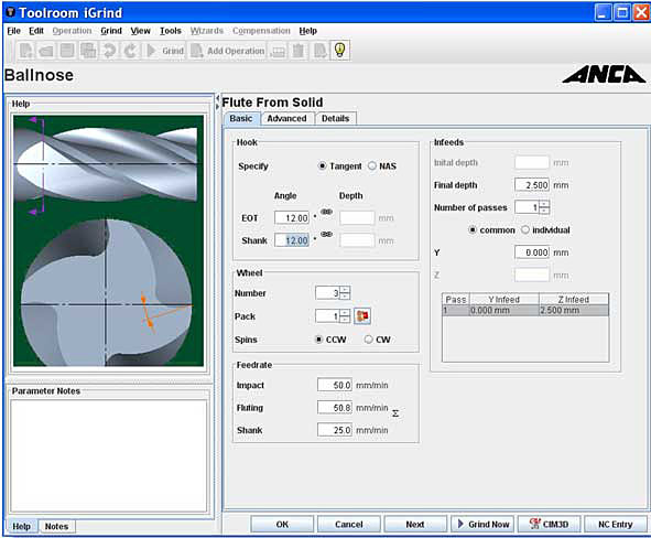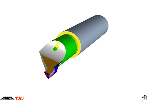 Simulation zum Herstellen von Fräsern mit komplexen Geometrien, Fehler werden vor dem Schleifprozess ersichtlich.